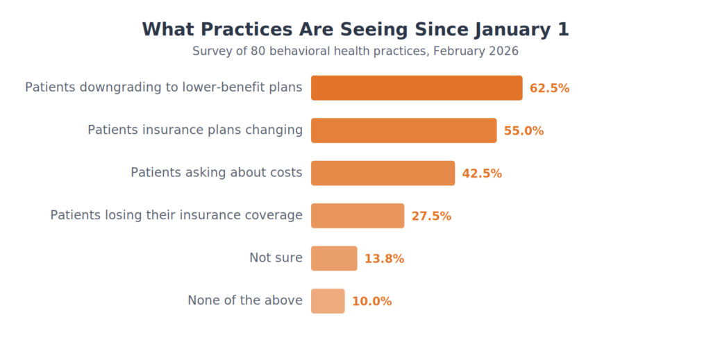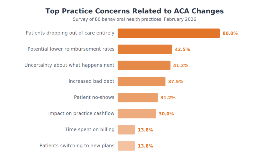In February 2026, Celeriti Practice Management surveyed 80 behavioral health practices to understand how the expiration of ACA enhanced subsidies is affecting their operations, their patients, and their outlook. These are the results.