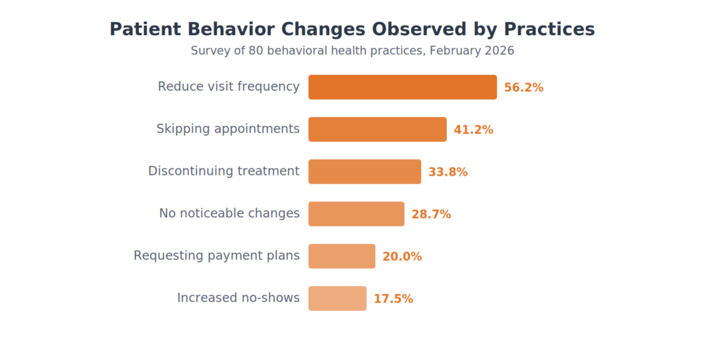 Beyond insurance-level changes, practices are seeing direct shifts in how patients engage with care. Over half report patients asking to reduce visit frequency.